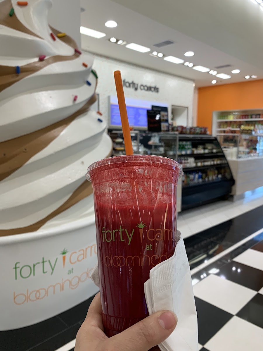 My shopping experience at Bloomingdale's was elevated by a delightful visit to Forty Carrots. The concept of enjoying fresh juice while browsing the store is simply genius. The vibrant and inviting atmosphere of Forty Carrots added a wonderful touch to my shopping trip. The selection of fresh juices offered was both refreshing and satisfying. It's the perfect way to take a break from shopping and recharge before continuing the spree. The staff was friendly and efficient, ensuring that I received my order promptly. Overall, I was thoroughly impressed by the addition of Forty Carrots to the Bloomingdale's shopping experience. It's a fantastic concept that adds a unique and enjoyable dimension to the visit. If you're at Bloomingdale's, don't miss the opportunity to try out Forty Carrots for a revitalizing pause during your shopping adventure!